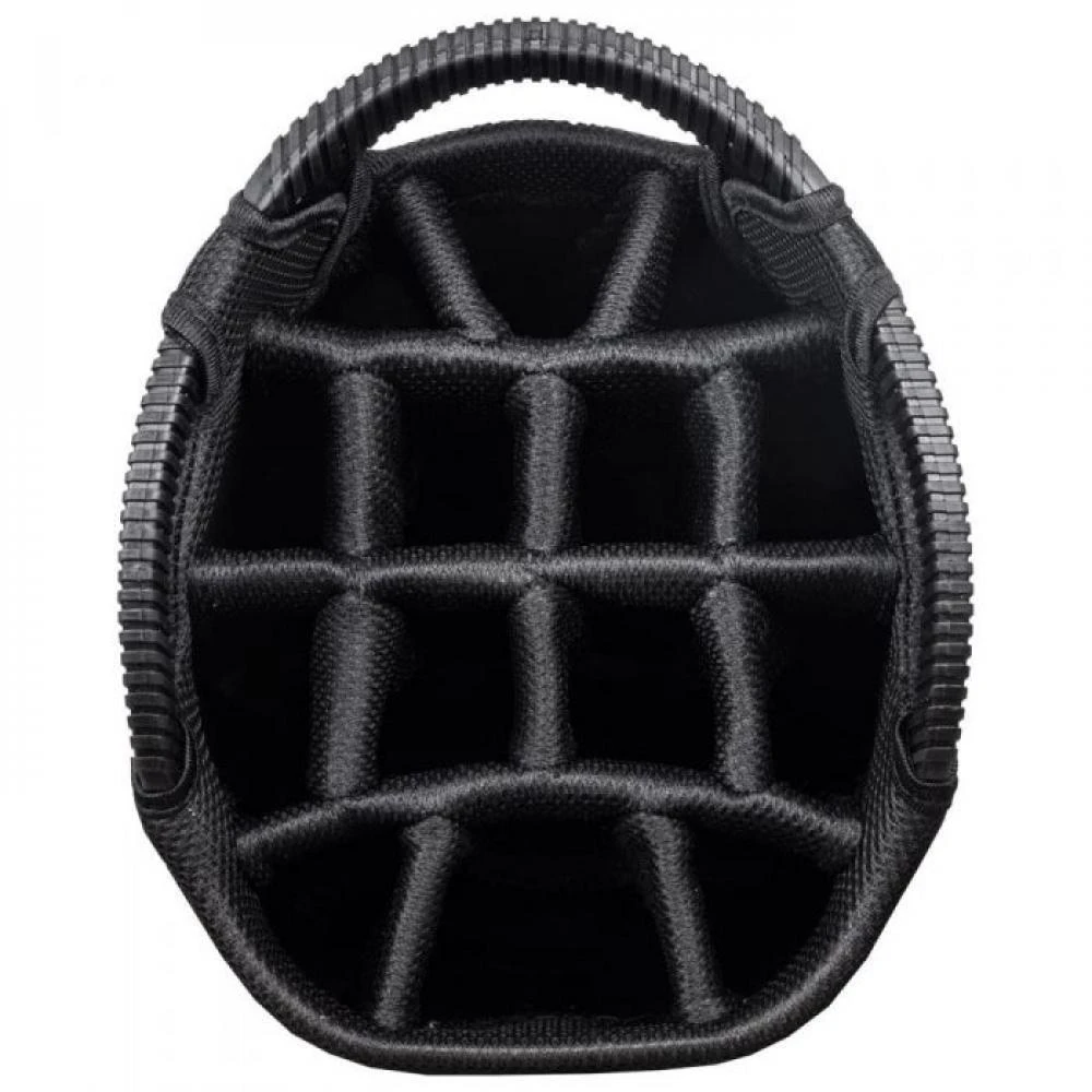 This is combined with 6 zippered pockets that are convenient to access while keeping valuables, accessories, and essentials secure. Weighing in at just 5.9lbs, it is easy to hoist via the 3-grab handles, while the double strap distributes loads evenly, minimising carry fatigue during your round. Packed with added features such as a towel carabiner, pencil holder and ball holder to ensure a smooth and hassle-free round of golf, every time. Rain hood included, umbrella holder loop with padded support.