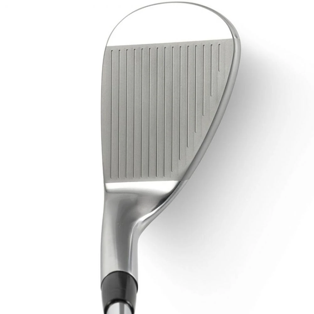 The Mizuno T22 Chrome wedge benefits from a new modified Teardrop shape with extensive beveling on the topline. For the appearance of a thinner top edge, because it allows for greater control and versatility. The spin weighted design features flaring or tapering of the upper portion of the blade. For a more focused CG location, delivering a more penetrating ball flight. Mizuno have utilised their tour-proven HydroFlow Micro Grooves. Which are laser etched into the face to disperse moisture from the impact zone at impact, giving extra control in wet conditions, while the Quad Cut milled design ensures a longer effective life span.