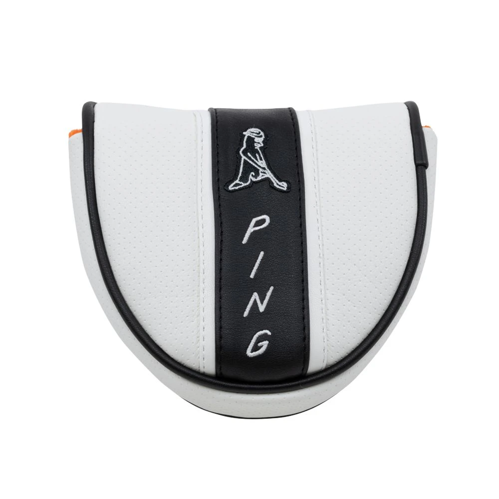 The PING 1959 Mallet headcover Limited Edition. It is a wonderful replacement for the usual golf headcovers. It is available and will fit any PING golf mallet putter. Ping putters like the fetch or the cadence style mallets. This replacement headcover will transform your golf bag and give it more durability than an older headcover from the past.
