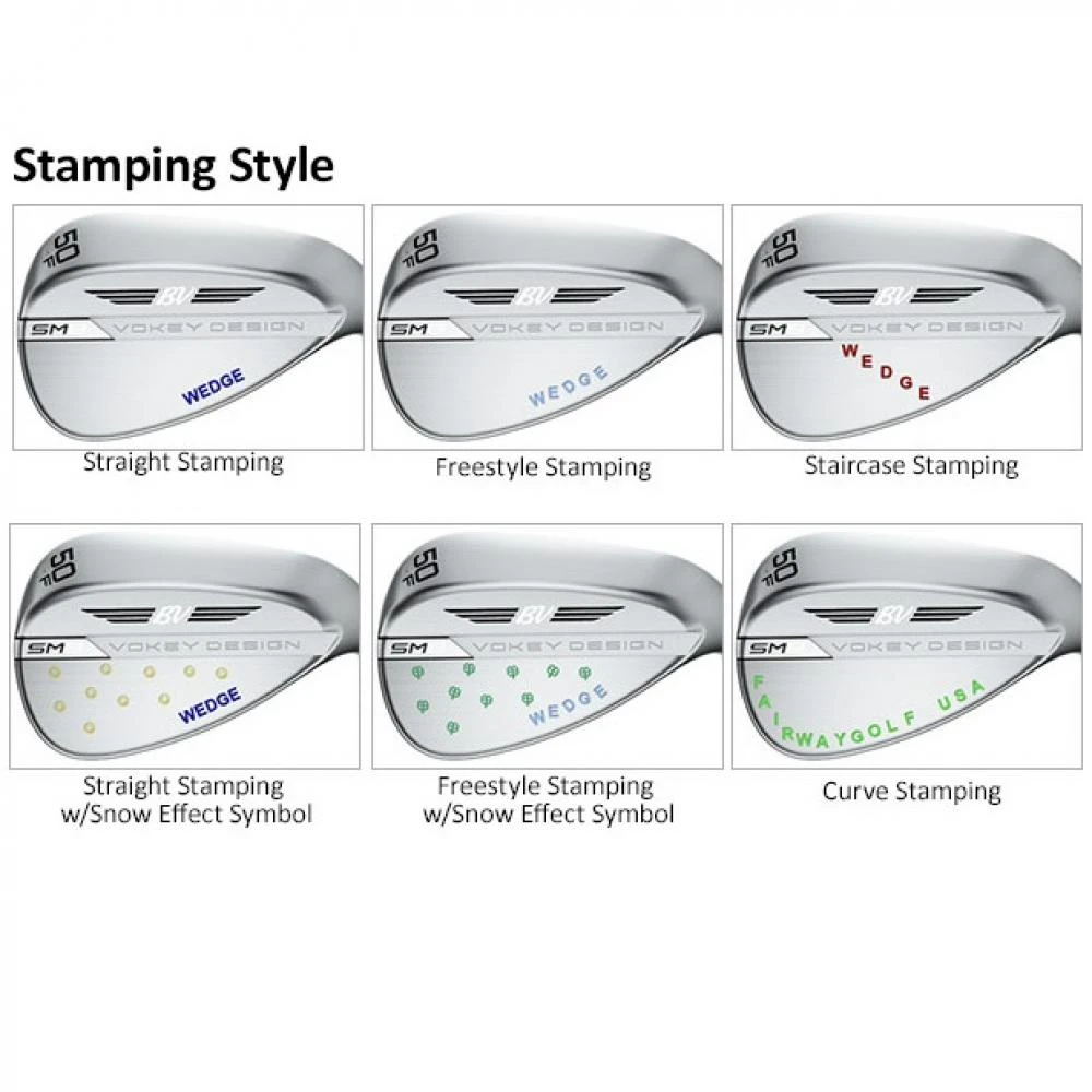 Personalise your Vokey wedgeworks SM9 wedges the way you would like. CHOOSE FROM 3 STYLES OF STAMPING AND 12 COLOURS – 10 DAY TURNAROUND